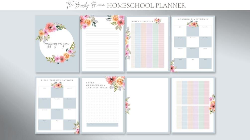 The best of all styles of planners, The Mushy Mama Homeschool Planner features undated and unlabeled lesson plans and was thoughtfully designed with beautiful seasonal watercolor that vary throughout the year to keep you coming back to it again and again.